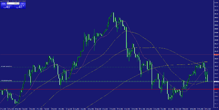 3월 15일경 USDJPY 통화쌍의 일간 차트입니다. 상단의 붉은 선은 손절(Stop Loss) 선이며 하단의 붉은 선은 수익실현 목표선입니다. 중간에 0.5랏씩 두 개의 포지션에 진입해 있는 상태입니다. 가격뿐 아니라 여러 경제 지표 등을 보았을 때 절대 목표까지 도달하지 못할 것으로 보입니다. 이 사이에 미국의 SVB 사태는 이미 반영되었고 Fed 금리 인상도 예고된 상황입니다.