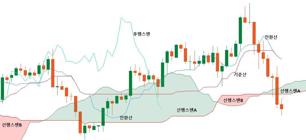 선행스팬 A = (텐칸선 + 기준선) / 2